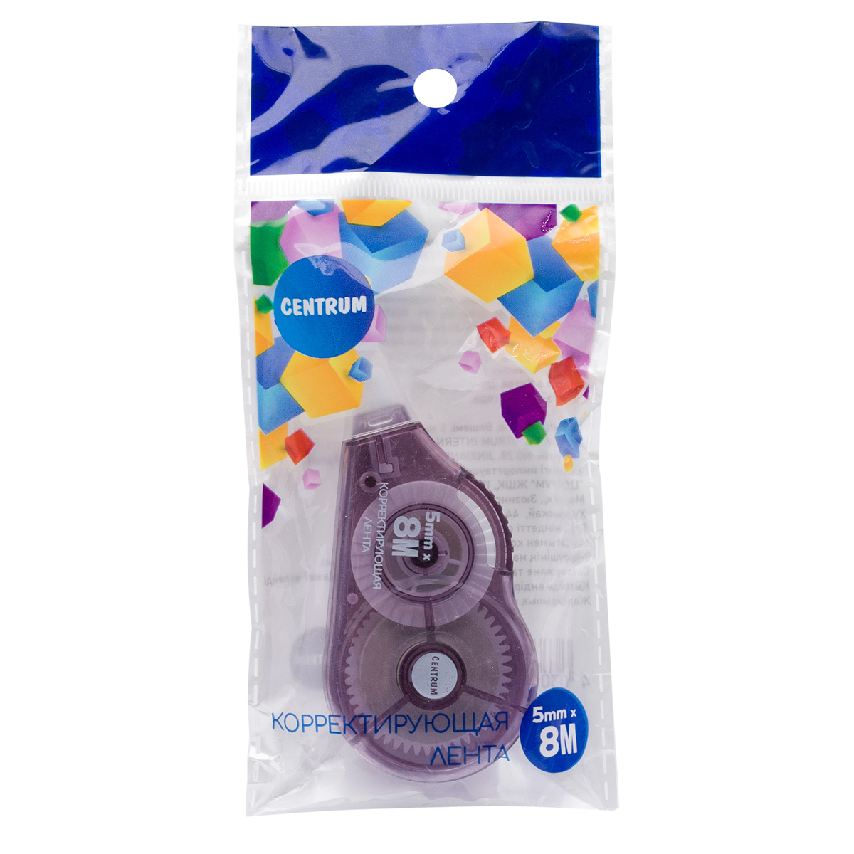 Корректирующая лента - незаменимый инструмент для тех, кто заботится о безупречном виде документов. Лента располагается в компактном и креативном пластиковом контейнере, эргономичный дизайн которого обеспечивает удобный хват. Внутри корпуса находится специальный сухой состав в виде тонкой ленты. При нажатии на корпус лентопротяжный механизм подает ленту на рабочий узел. Ролик, выполненный из пластика, обеспечивает плавное, непрерывное движение ленты. Преимущества корректирующей ленты перед традиционными жидкими корректорами: - лента, в отличие от жидких корректоров, не растекается и не образует комков, что исключает загрязнение пенала или других предметов. - корректирующая лента не требует времени на высыхание, поэтому исправленная область сразу же готова к работе. Это позволяет сэкономить время и продолжить деятельность без задержек. - белый цвет ленты эффективно скрывает чернила любого цвета, в том числе темные и яркие. Перекрывающая способность сохраняется даже при многократном нанесении, что позволяет исправлять даже значительные ошибки. - корректирующая лента не теряет своих свойств при перепадах температур, что делает ее пригодной для использования в любых климатических условиях. Во избежание засыхания ленты всегда закрывайте колпачок после использования. Ширина ленты: 5мм. Длина ленты: 8 м.