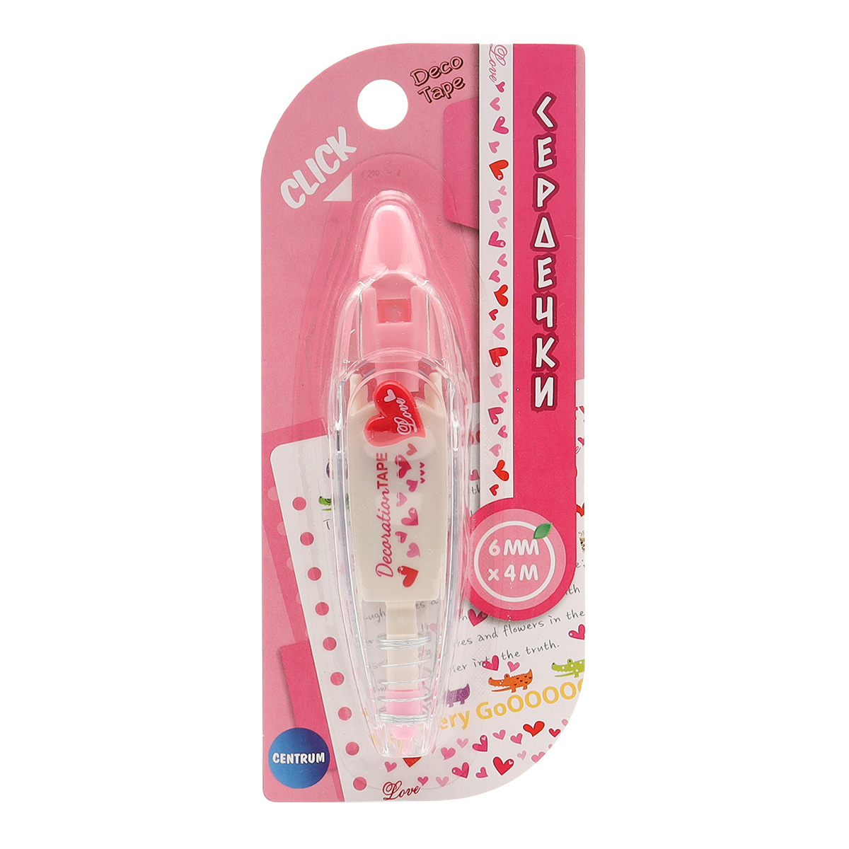 Лента-корректор полупрозрачная 'Сердечки' поможет спрятать нежелательный фрагмент текста, а также украсить ваши записи. На ленте напечатан яркий рисунок, чтобы страница с записями выглядела более креативно. Отличный выбор для младших школьников: рабочее место останется чистым, а яркий дизайн поможет создать веселое настроение. Легко помещается в рюкзаке или пенале. Этим аксессуаром легко пользоваться: нажмите на кнопку корпуса и проведите линию там, где необходимо. Лента будет подаваться плавно и непрерывно, что обеспечивает пластиковый ролик. Не нужно ждать, когда покрытие засохнет, можно сразу же приступать к работе. Товар не требует особых условий для хранения. Размеры ленты: ширина 6 мм, длина 4 м.