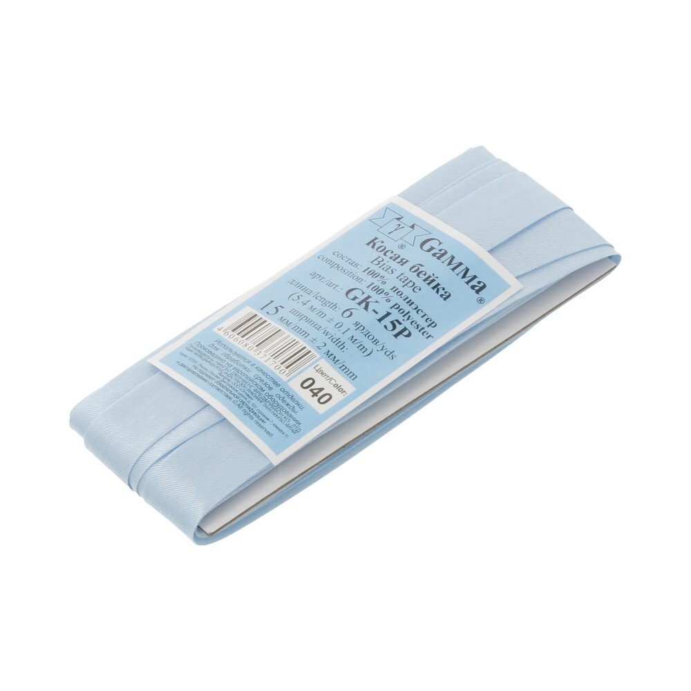 Косая бейка атласная 15 мм / 5 шт по 5.4 метра, №040 бл.голубой, Gamma GK-15P