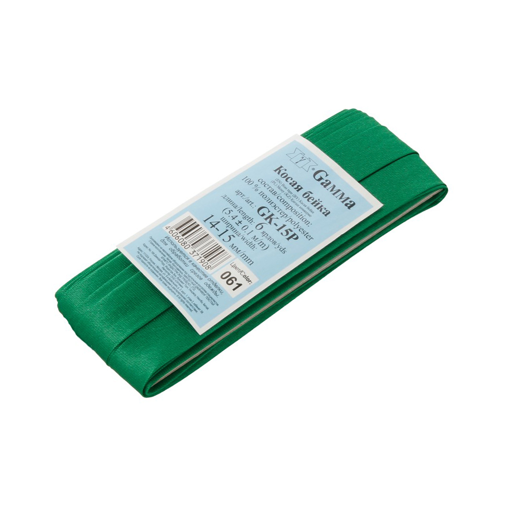 Косая бейка атласная 15 мм / 5 шт по 5.4 метра, №061 зелёный, Gamma GK-15P