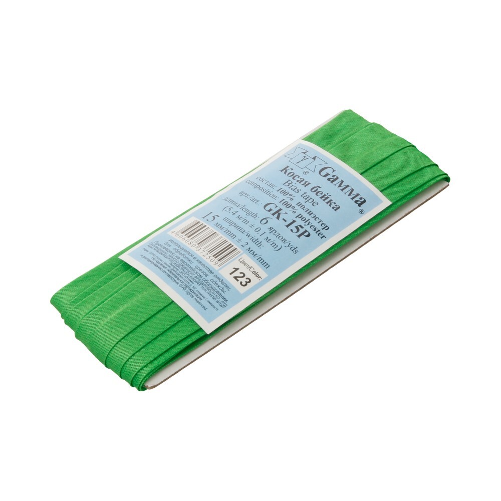 Косая бейка атласная 15 мм / 5 шт по 5.4 метра, №123 зеленый, Gamma GK-15P