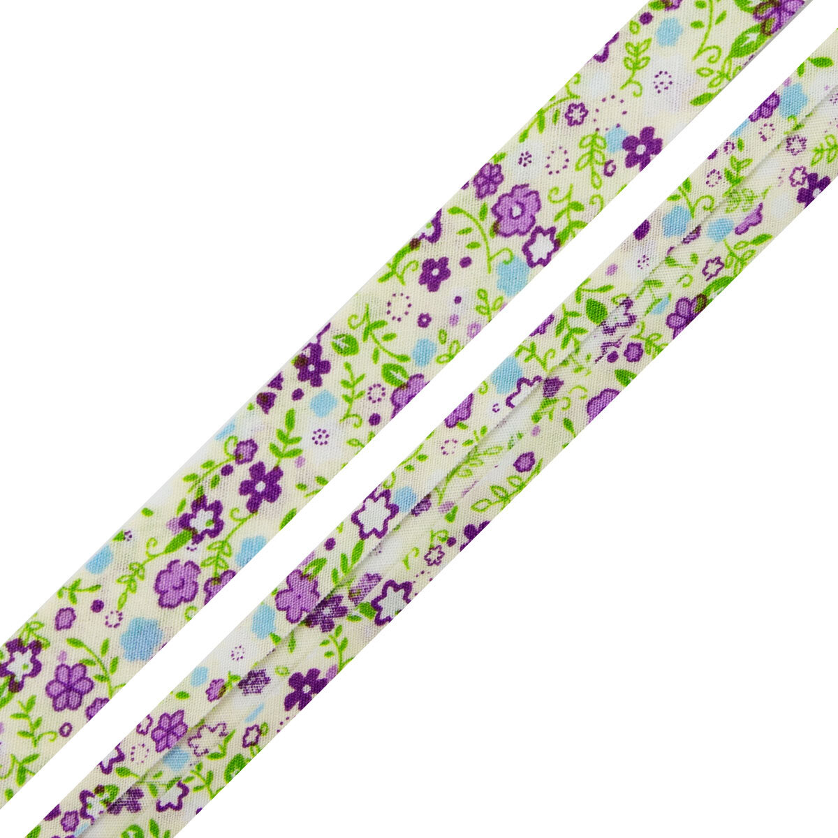 Готовая косая бейка с принтом 'Полевые цветы', ширина 15мм. Косая бейка – выкроенная по косой полоска ткани, которая используется для окантовки разнообразных деталей одежды. Бейка является незаменимым элементом любого качественного изделия. С помощью косой бейки можно быстро и надежно обработать края ткани, создав эстетичную и привлекательную вещь. Косая бейка используется в качестве отделки, для обработки бортовых срезов на ткани, горловины, пройм, низа рукавов одежды, а также для декорирования текстильных изделий. Качественный материал, для изделий из натуральных тканей, таких как хлопок, лен. Состав: 60% хлопок, 40% полиэстер.