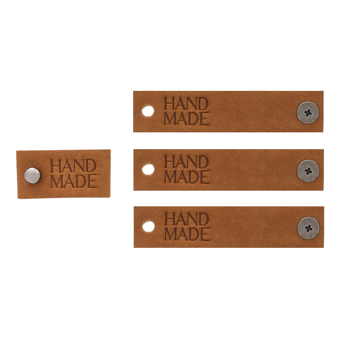 Кожаные бирки с тиснением на кнопке Hand Made 17х70 мм, 4 шт, коричневый