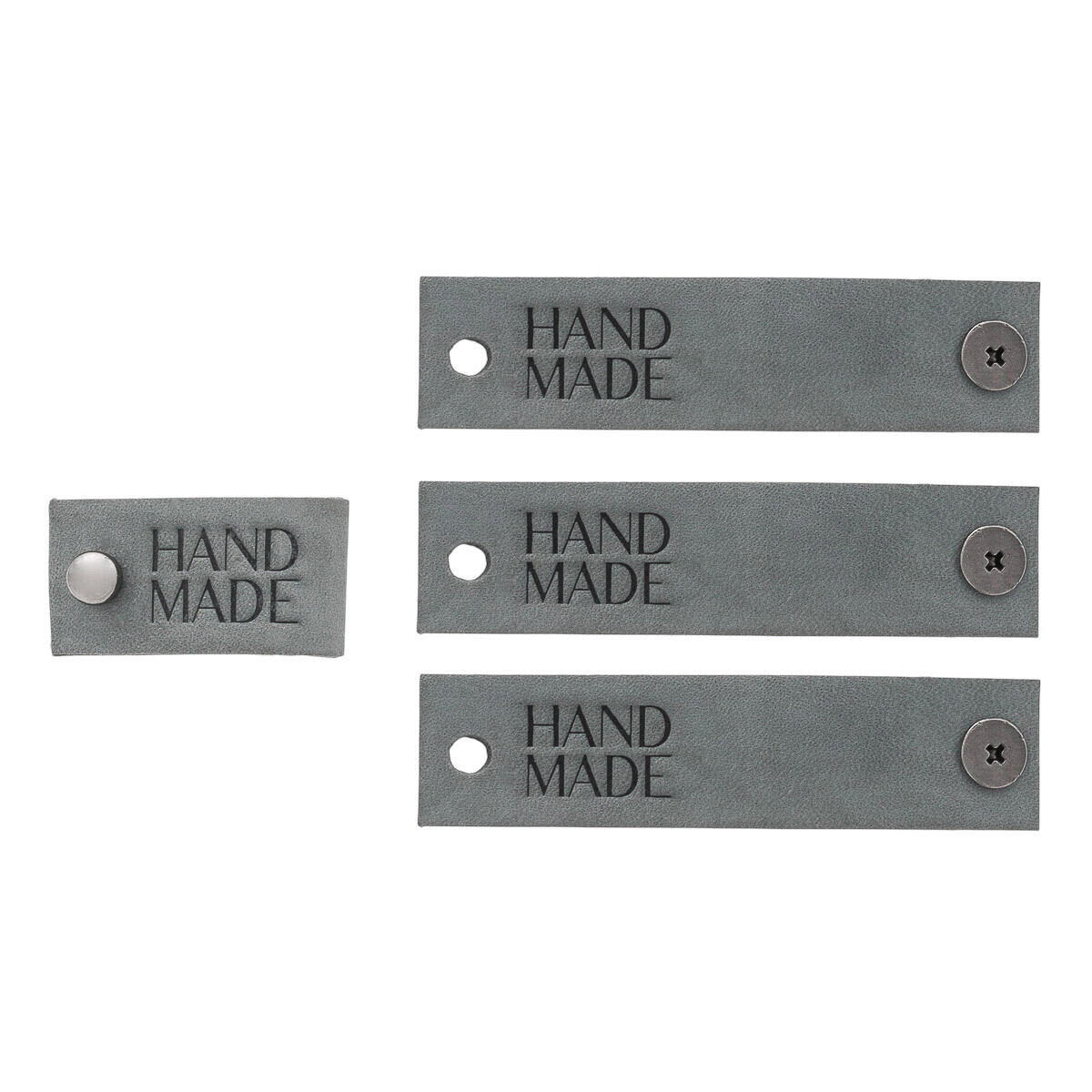 Кожаные бирки с тиснением на кнопке Hand Made 17х70 мм, 4 шт, серый