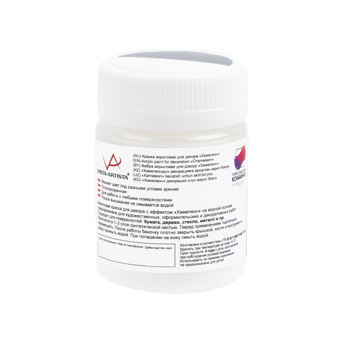 это водорастворимая акриловая краска с пигментами на основе интерферентной слюды. Используется для создания эффекта с многоцветным переливом, который меняется в зависимости от того, как падает свет и под каким углом вы смотрите.
