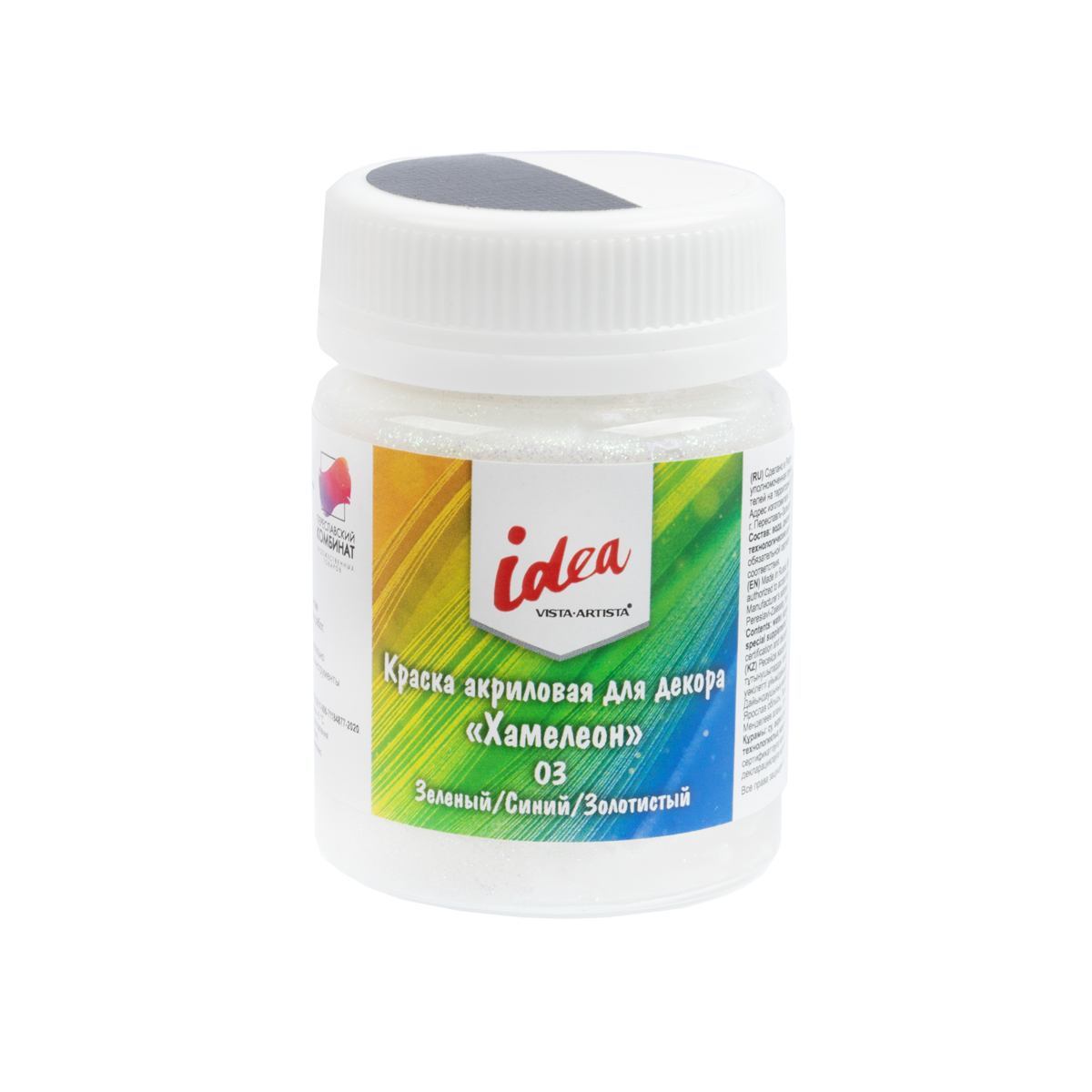 это водорастворимая акриловая краска с пигментами на основе интерферентной слюды. Используется для создания эффекта с многоцветным переливом, который меняется в зависимости от того, как падает свет и под каким углом вы смотрите.