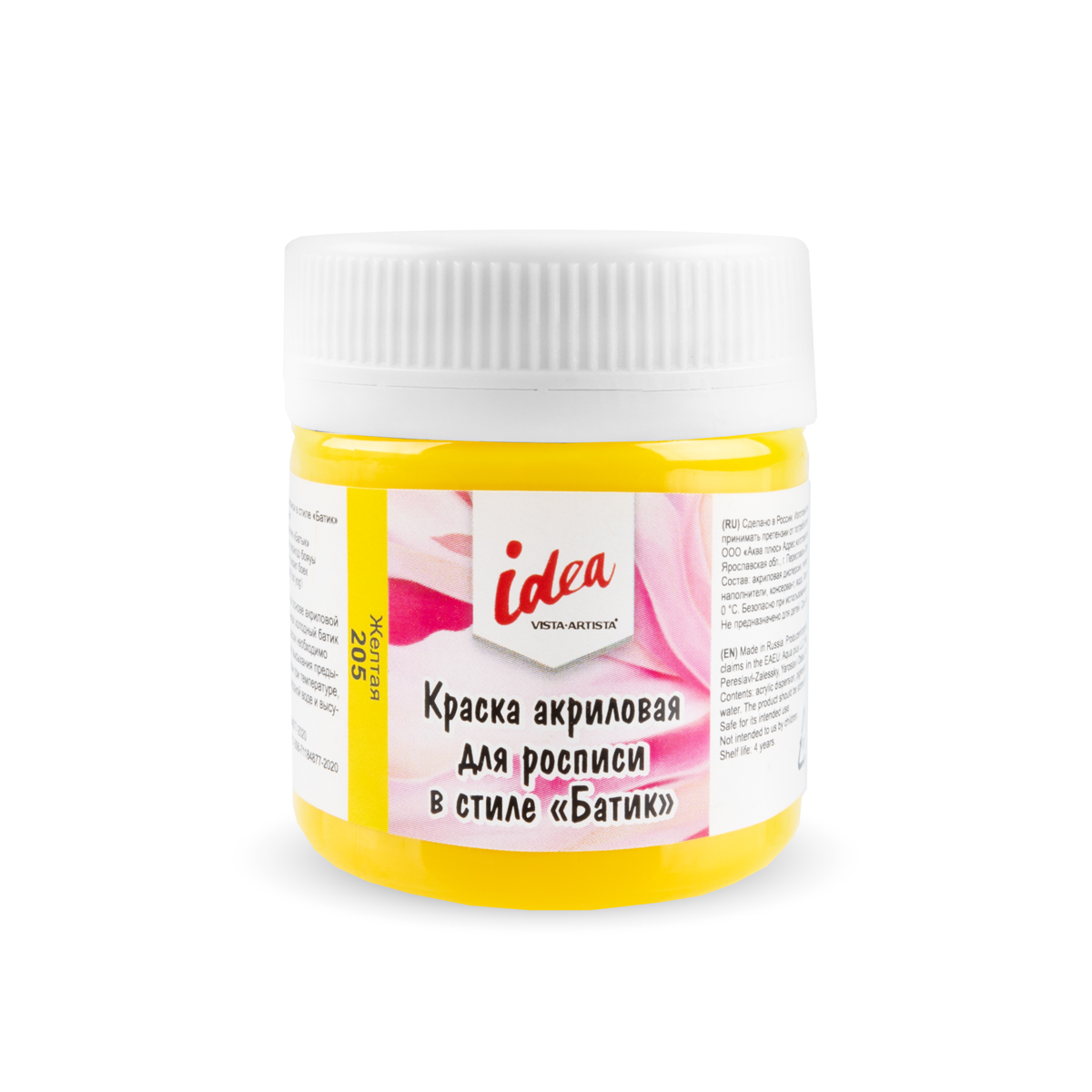 Краска акриловая для росписи в стиле Батик 40 мл, 205 Жёлтая (Yellow), Vista-Artista ICB-40