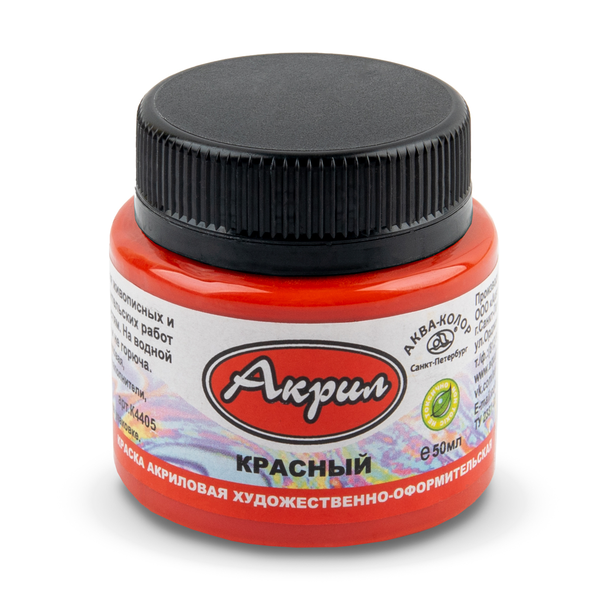 Краска акриловая художественно-оформительская 50 мл, красная, Аква-колор К4405