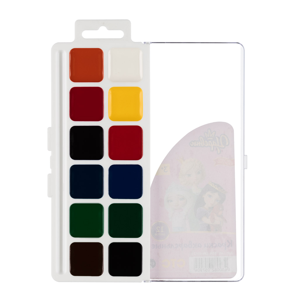 Акварель набор в пластиковой упаковке 12 цв, 01, Царевны, TSR-LW-0112