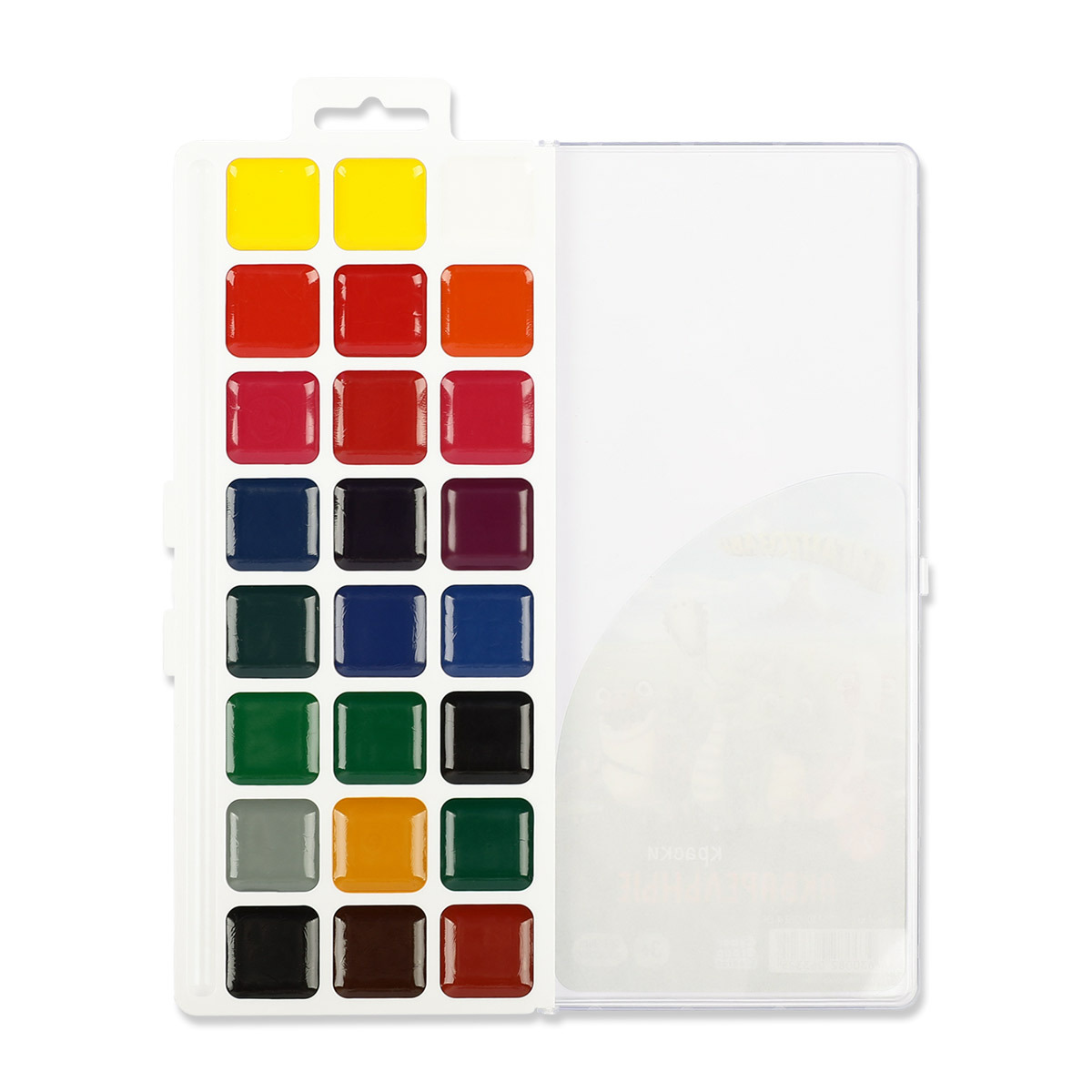 Акварель выпускается в классическом пластиковом пенале с прозрачной крышкой и европодвесом. Пенал функционален и достаточно прочен, обладает компактными размерами. Крышку можно использовать как палитру для смешивания красок, предусмотрено отделение для кисточки. Замок и крепление надежны, пенал выдерживает падения и многократные открывания.