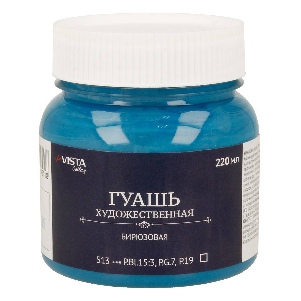 Гуашь Gallery Vista-Artista изготовлена по традиционной технологии и рецептуре. В основе связующего красок - натуральный гуммиарабик, обеспечивающий прекрасную разносимость красок. За чистоту цвета, высокую укрывистость и бархатистость матового слоя после высыхания отвечают высококачественные пигменты и специальные наполнители.