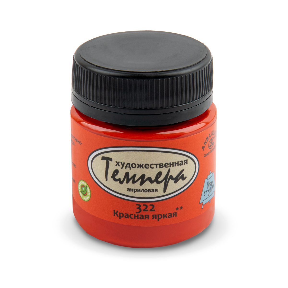 Краска темпера художественная акриловая 40 мл, К72322 322 красная яркая, Аква-колор