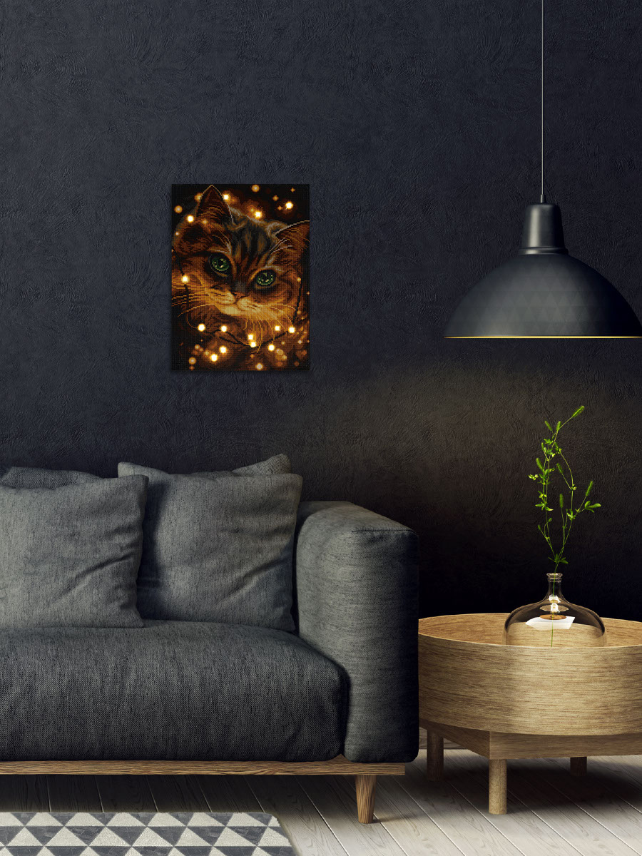 Готовая картина станет еще эффектнее! Благодаря светодиодной гирлянде, каждая деталь сюжета заиграет новыми красками. Огоньки добавят работе объем и усилят атмосферу.