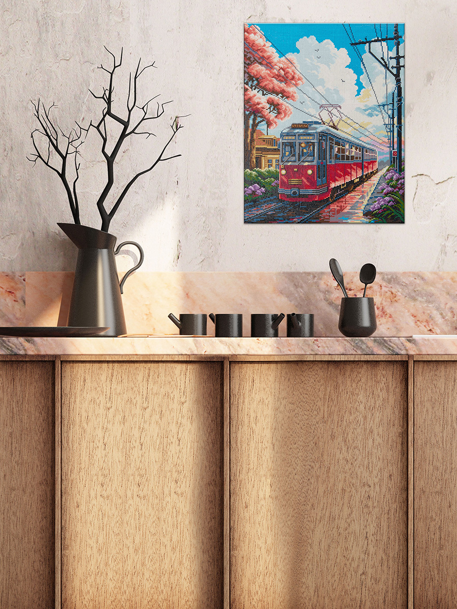 Кристальная (алмазная) мозаика Фрея ALPD-286, на подрамнике, Трамвай, 40х50 см
