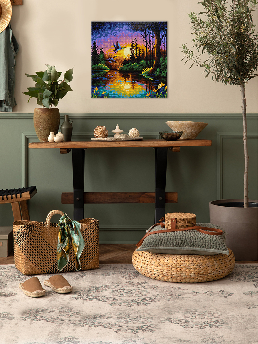 В данном наборе холст уже натянут на деревянный подрамник, поэтому вам не придется оформлять его в багет. Готовую работу сразу можно поставить на полку или повесить на стену при помощи специального крепления. А благодаря тому, что под холстом находится подложка, возможность провисания основы при выкладывании картины исключается. Увлекательный процесс создания картины поможет развить мелкую моторику рук и интересно провести время за творческим занятием.