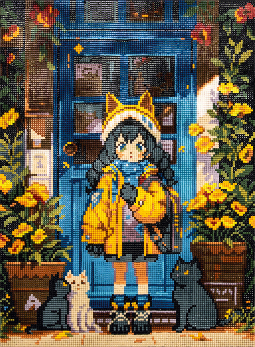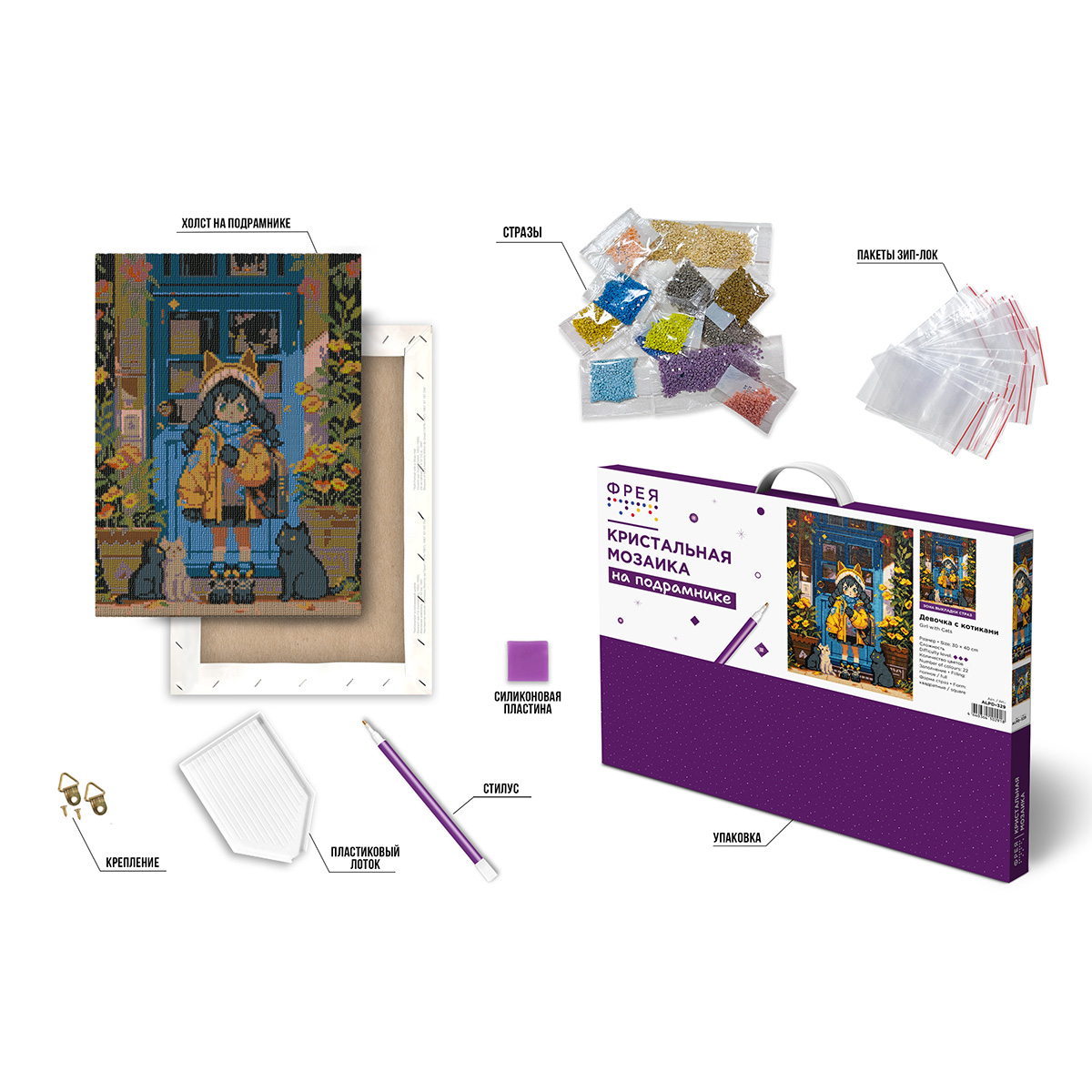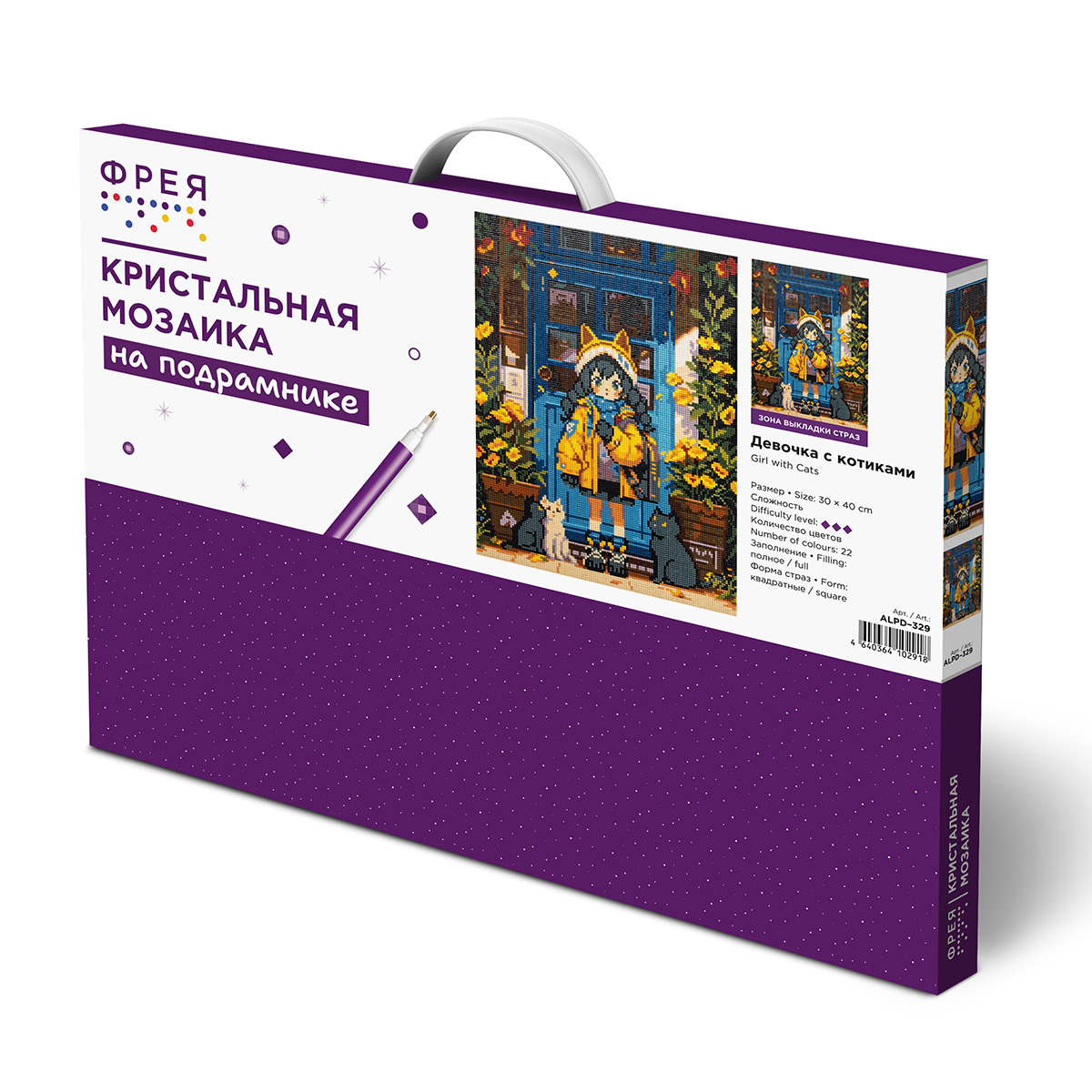 Кристальная (алмазная) мозаика Фрея ALPD-329, на подрамнике, Девочка с котиками, 30х40 см