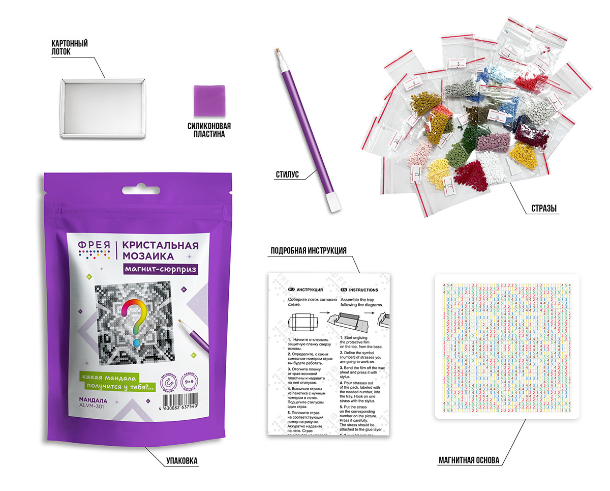 В набор ТМ ФРЕЯ "Кристальная мозаика" входит: