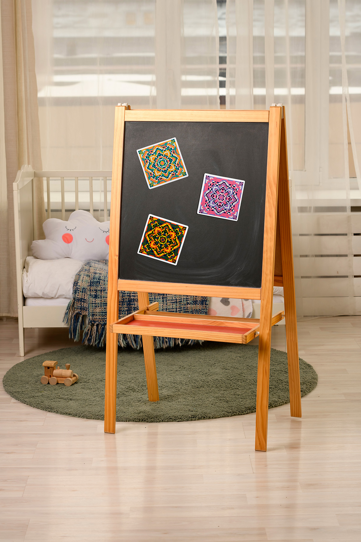 Мандала может стать ярким акцентом на кухне или служить подставкой под кружку, а случайный набор цветов позволит погрузиться в творческую медитацию.