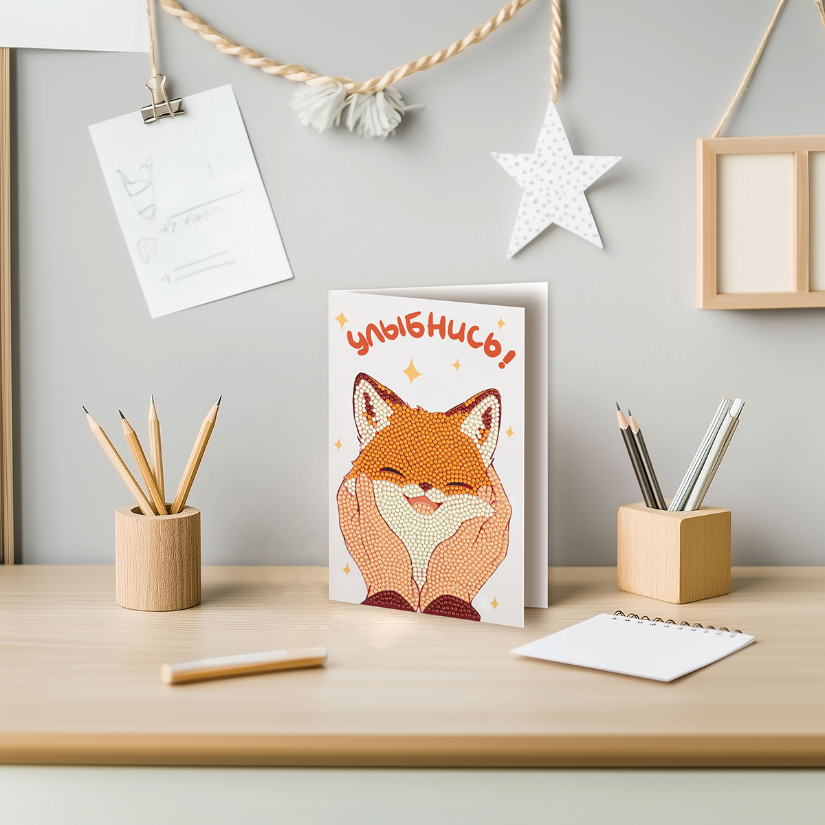Кристальная (алмазная) мозаика Фрея ALVO-516, открытка, Счастливый лисенок, 13.5х20 см