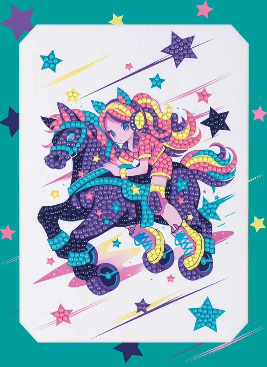 Выполнение работы не требует специальных навыков, выкладывать магнит очень легко и быстро. Стразы наклеиваются поверх изображения со схемой на уже нанесенный клеевой слой.