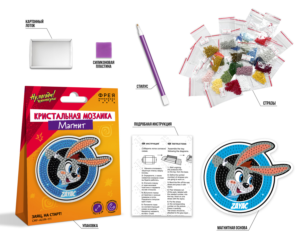 Набор, сертифицированный для детского творчества, для создания яркого магнита. Рекомендованный возраст: 7+.