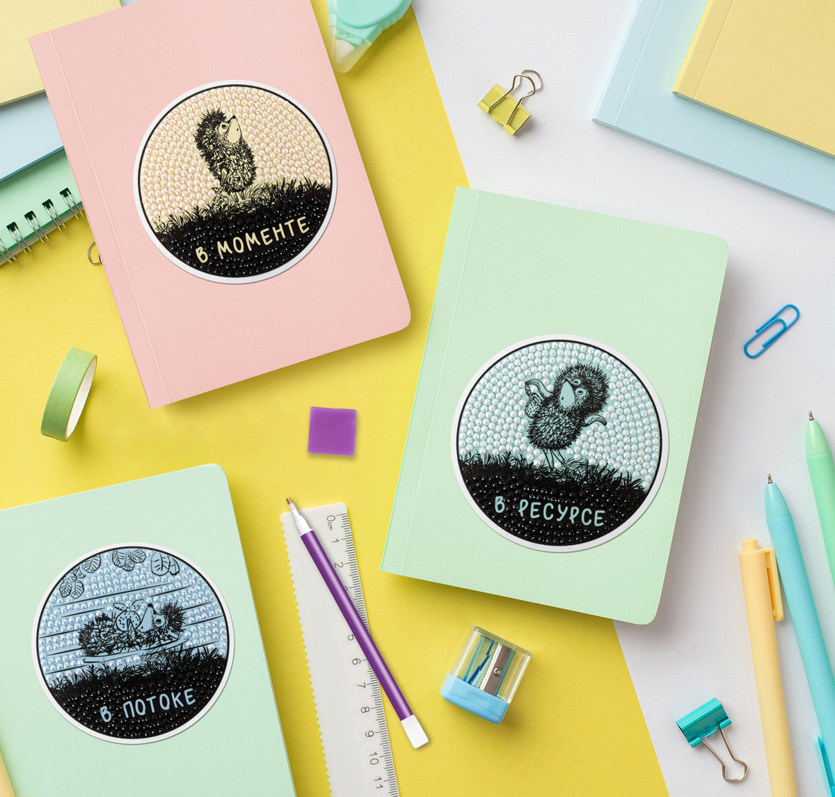 Увлекательный процесс создания изделий поможет развить мелкую моторику и повысить концентрацию внимания. Готовыми наклейками с яркими стразами можно украсить любую ровную поверхность, например блокнот, тетрадь, телефон и многое другое.