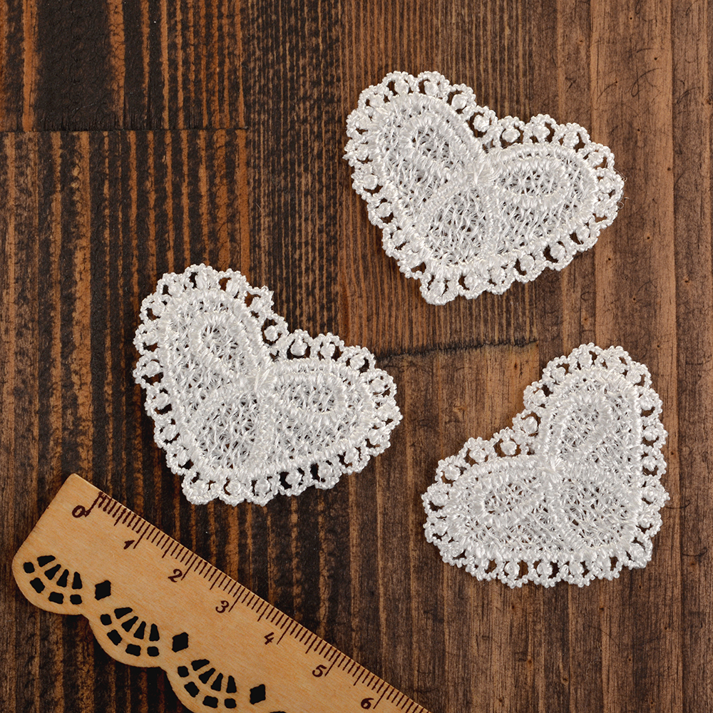 Пришивная кружевная аппликация Сердце с бантиком 5.5 см, уп.50 шт, диз.3014, Kruzhevo
