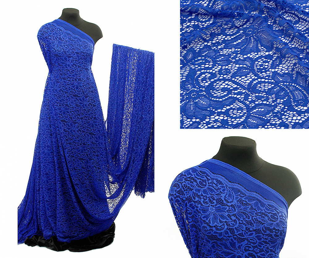 Ткань кружевная гипюр с кордом 130 г/м², 150 см / 1 метр, TBY.3036 цв.207 синий