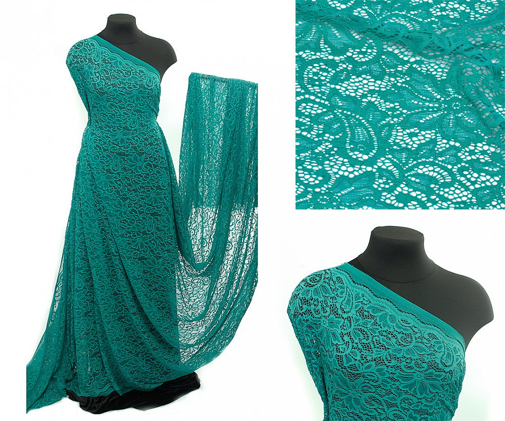 Ткань кружевная гипюр с кордом 130 г/м², 150 см / 1 метр, TBY.3036 цв.300 ментоловый