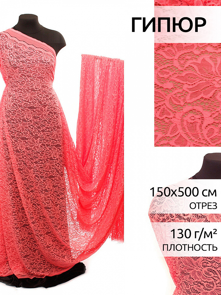 Ткань кружевная гипюр 130 г/м², 150 см / 5 метров, TBY.3036.816.5, цв.816 персик