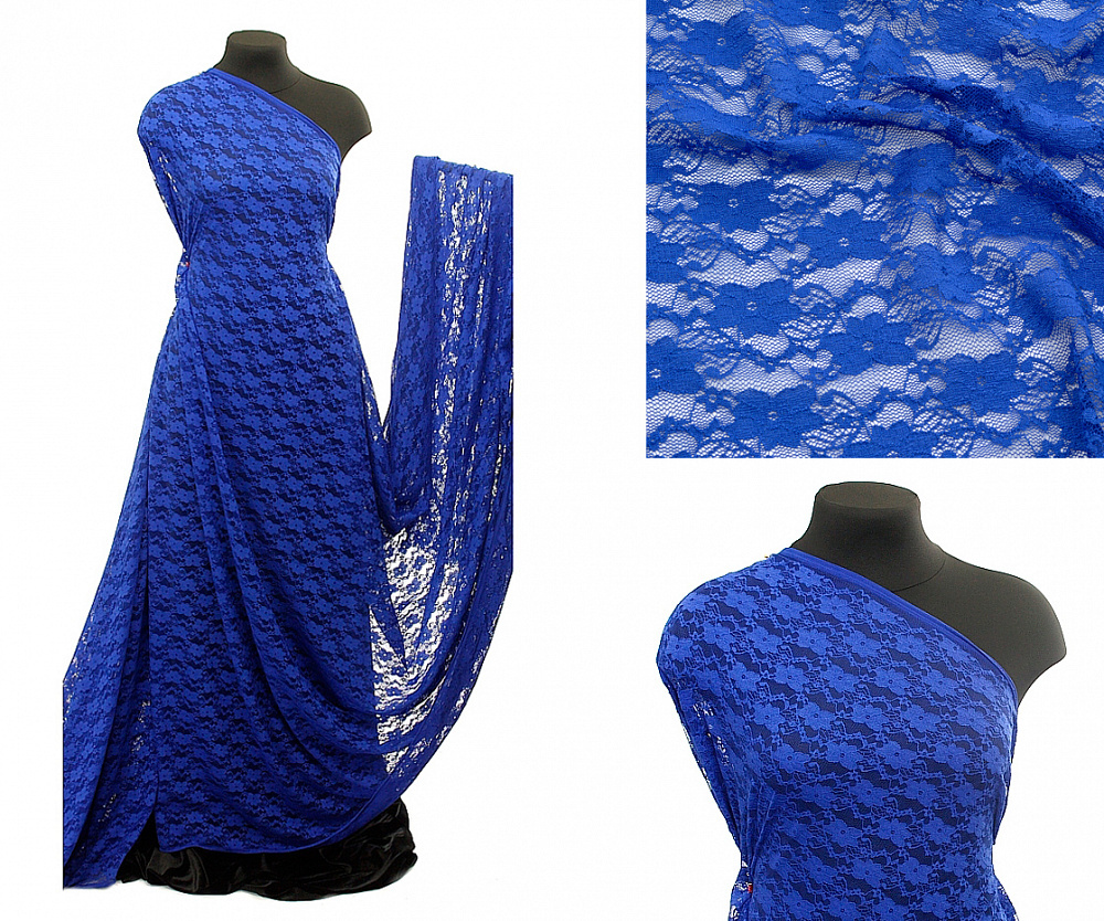 Ткань кружевная стрейч 100 г/м², 150 см / 1 метр, TBY.M903 цв.207 синий