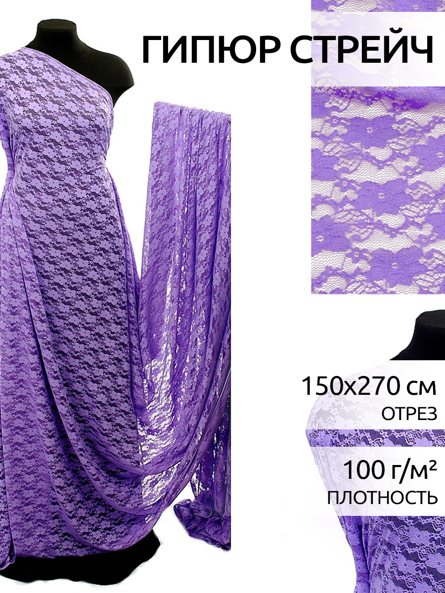 Ткань кружевная стрейч в нарезке арт.M903 150см 100 г/м², цв.164 сиреневый уп.2.7м
