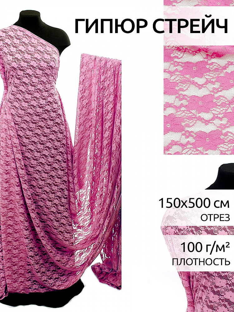 Ткань кружевная стрейч, диз. 813, цв.135 розовый, 5 м