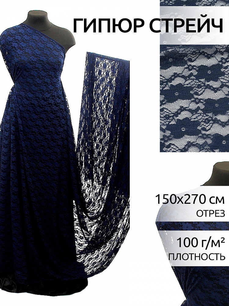 Ткань кружевная стрейч 100 г/м², 150 см / 2.7 метра, TBY.M903 цв.318 нейви