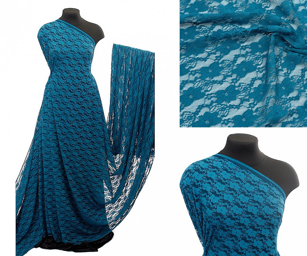 Ткань кружевная стрейч, диз. 813, цв.908 морская волна, 5 м