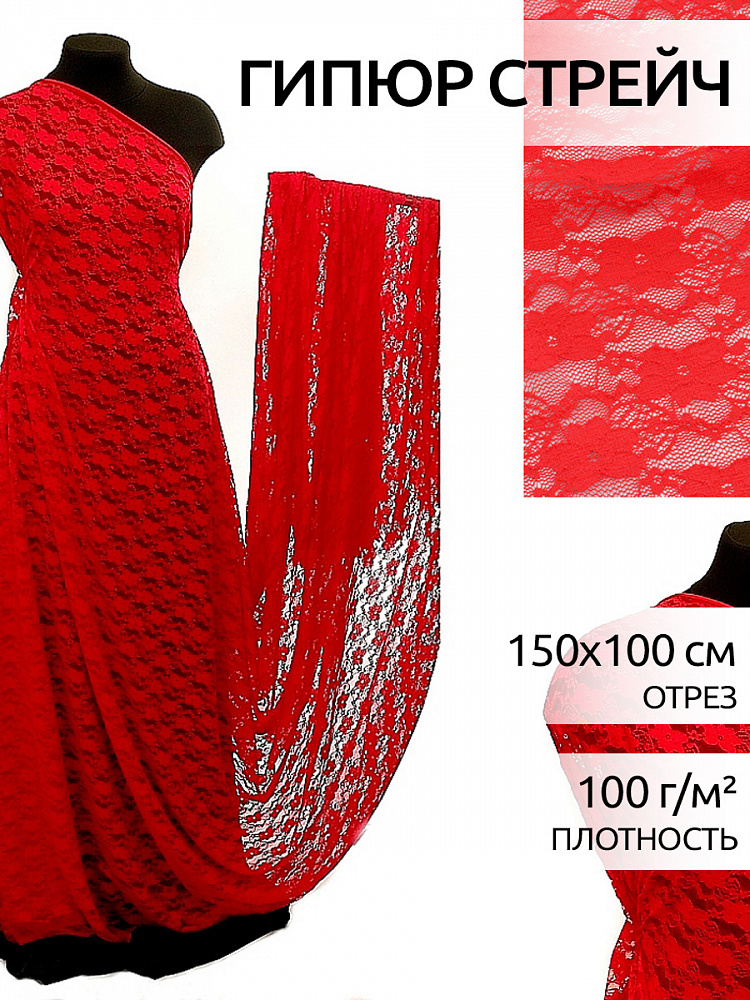 Ткань кружевная стрейч в нарезке 100 г/м², 150 см / 1 метр, TBY.M903, цв.145 красный