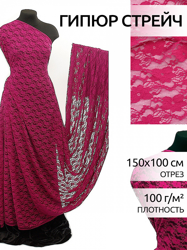 Ткань кружевная стрейч в нарезке 100 г/м², 150 см / 1 метр, TBY.M903, цв.239 фуксия