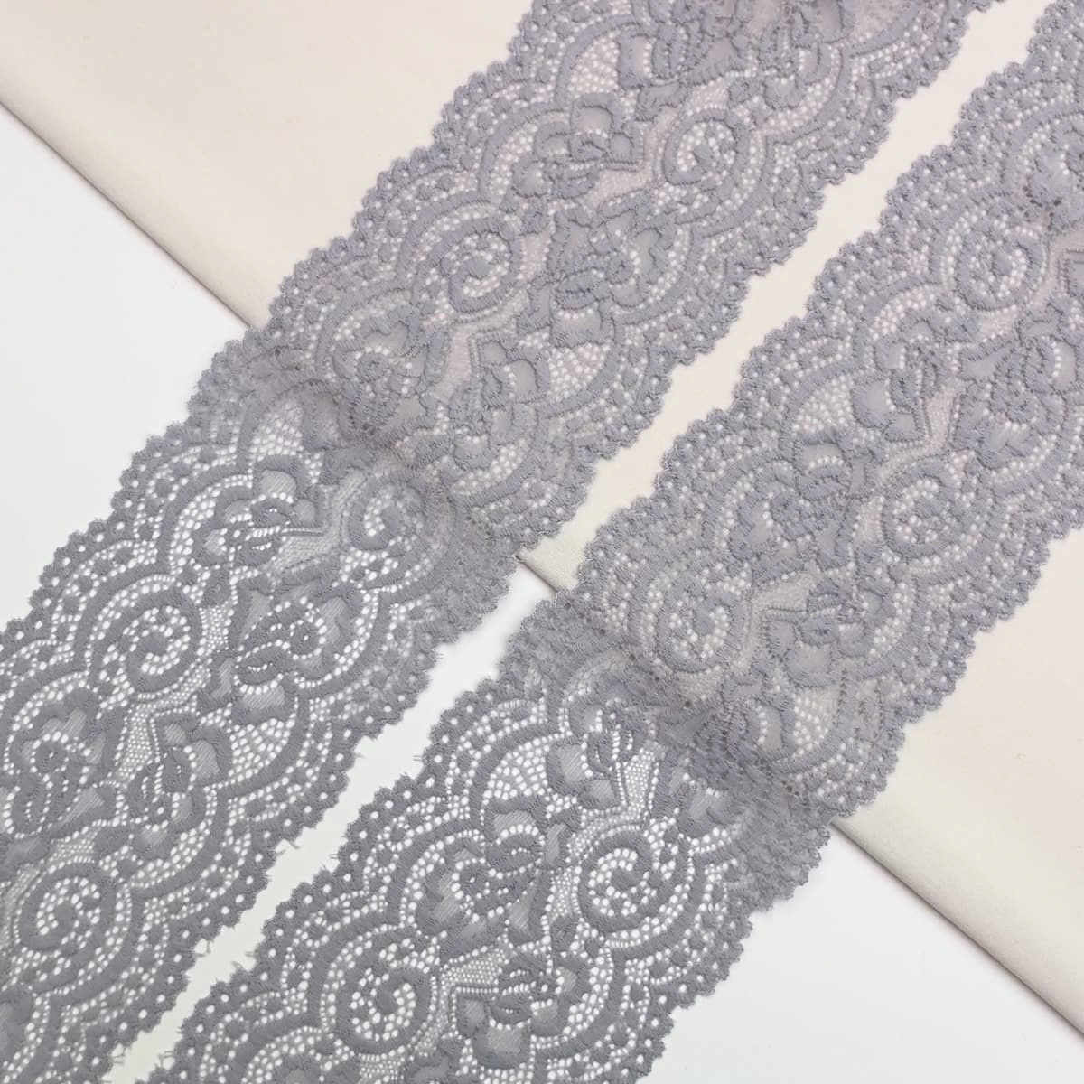 Кружево эластичное (стрейч) 100 мм / 2.7 метра, C154 светло-серый, QYE-042