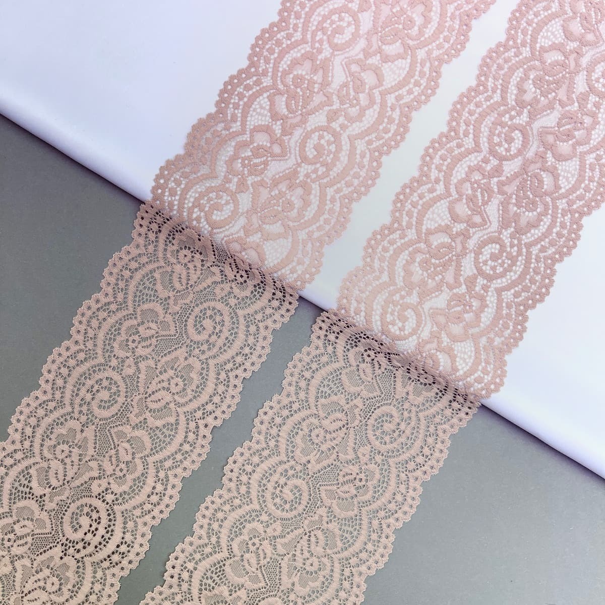 Кружево эластичное (стрейч) 100 мм / 2.7 метра, C344 пудровый, QYE-042