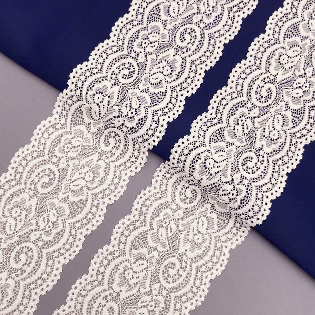 Кружево стрейч (эластичное) 100 мм / 2.7 метра, C571 молочный, QYE-042
