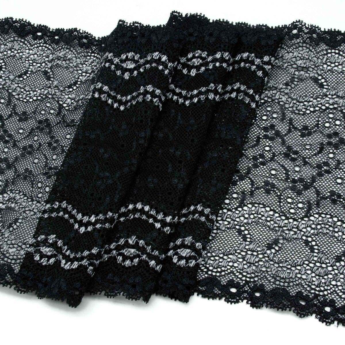 Кружево бельевое эластичное 180 мм / 10 м, черный, S090718
