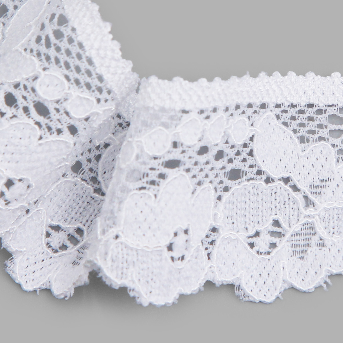 Кружево эластичное (стрейч) 30 мм, белый, 15 м