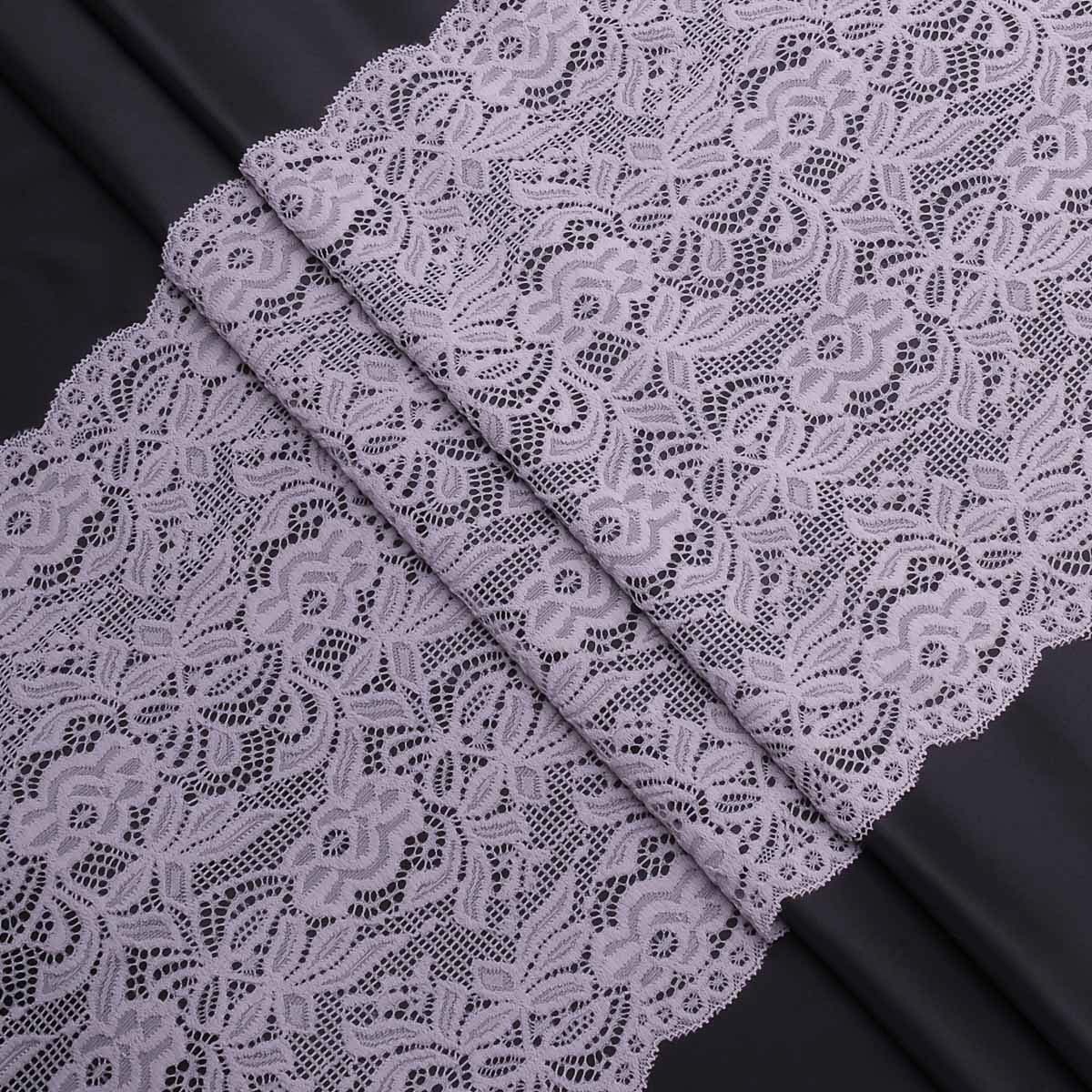 Кружево бельевое эластичное 300 мм / 3.4 метра, цвет светло-серый