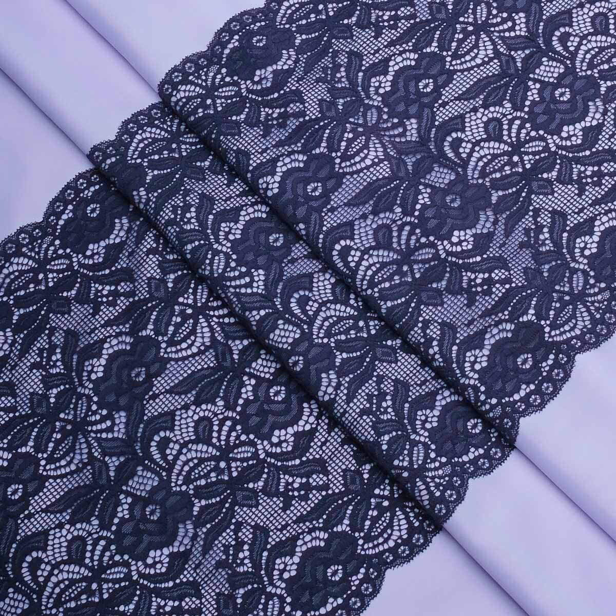 Кружево бельевое эластичное 300 мм / 3.4 метра, цвет темно-синий