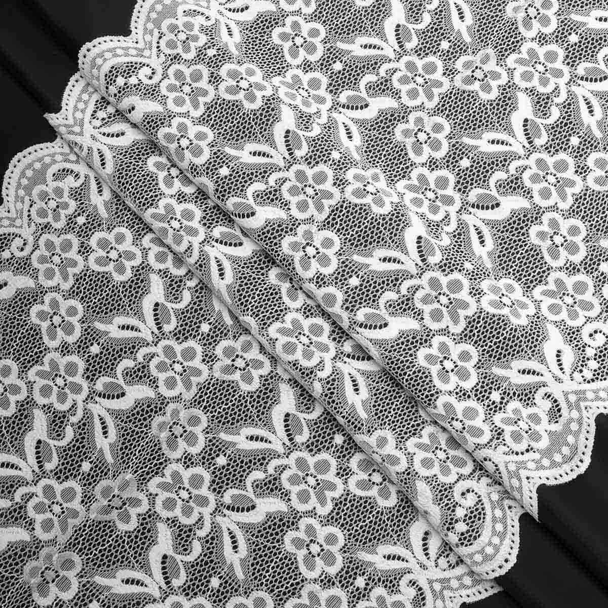 Кружево бельевое эластичное 400 мм / 3.4 метра, цвет белый