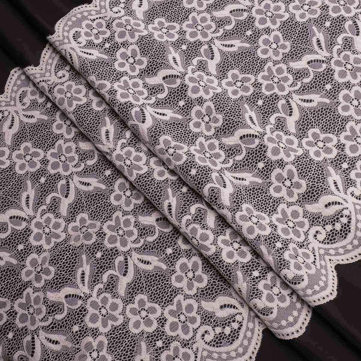 Кружево бельевое эластичное 400 мм / 3.4 метра, цвет молочный