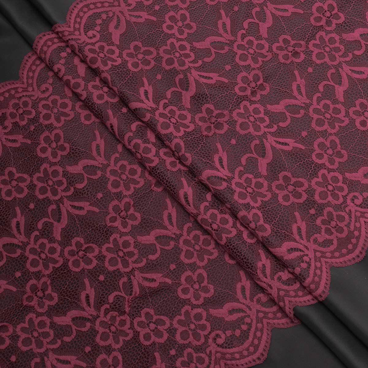Кружево бельевое эластичное 400 мм / 3.4 метра, цвет темно-красный