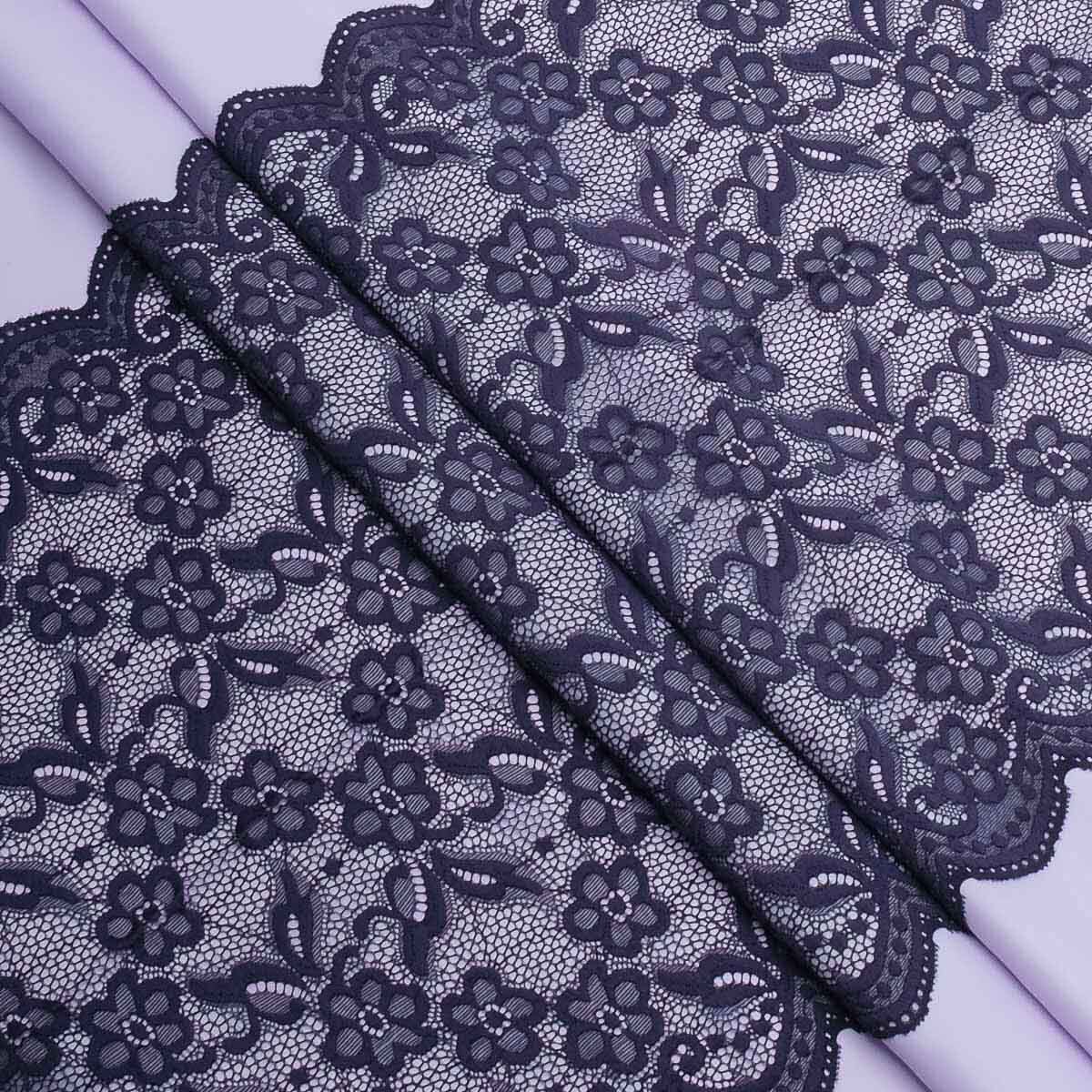 Кружево бельевое эластичное 400 мм / 3.4 метра, цвет темно-синий