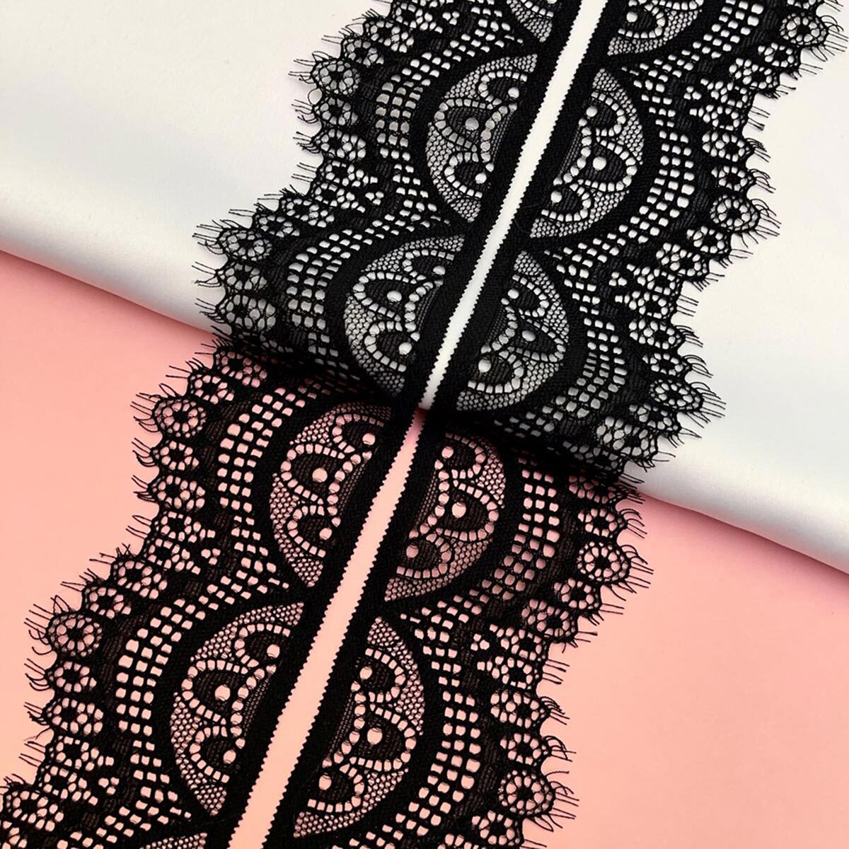 Кружево эластичное (стрейч) 60 мм / 2.7 метра, C580 черный, QYE-021