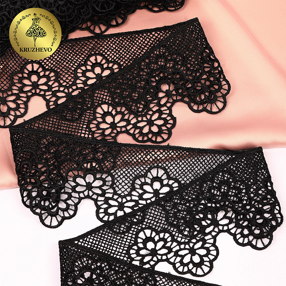 Кружево гипюр (плетёное) 80 мм, 0741 цв.черный уп.13.71м, Kruzhevo